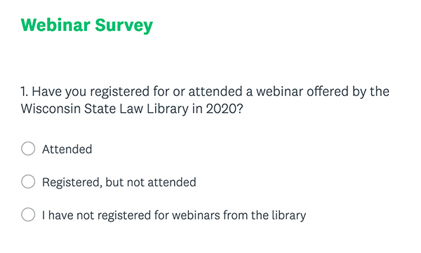 The State Law Library has been providing webinars over Zoom since the spring, offering CLE classes and online learning to hundreds of participants. Have you signed up for or taken one of our recent webinars? We'd love to hear what you liked, and where we can improve your experience in the future. Please take a couple of minutes to fill out our brief survey, and let us know what you think!
